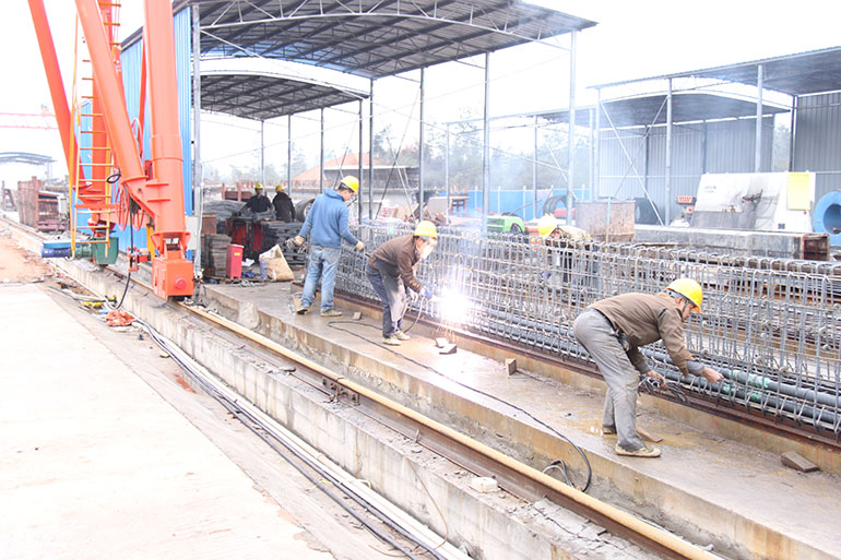 新年正月初六,氣溫驟降,陰雨綿綿,站在空曠的工地上,寒風(fēng)呼嘯而過(guò),感覺(jué)格外刺骨。走進(jìn)11標(biāo)項(xiàng)目部,頗顯冷清,值班的同事都在工地一線忙碌,只有公司副總經(jīng)理郭建文在等候我們,幾句寒暄之后,郭總帶領(lǐng)我們奔赴工區(qū)現(xiàn)場(chǎng)。郭總介紹,為了追趕進(jìn)度,項(xiàng)目部安排混凝土攪拌站、兩個(gè)制梁場(chǎng)以及漣水河大橋連續(xù)開(kāi)工,即使大年初一都沒(méi)有停工。