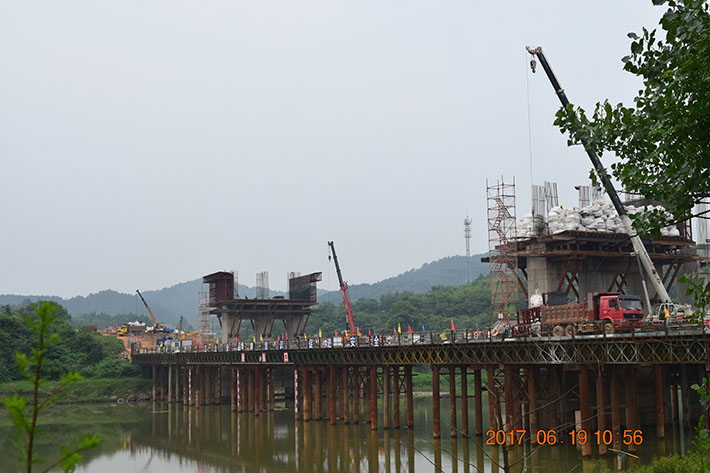 為了實現(xiàn)益婁高速公路2017年底通車的目標,5月份以來,公司董事長謝志方坐鎮(zhèn)益婁高速公路第十一合同段(下文簡稱益婁11標)項目部親自抓生產(chǎn)進度,與項目部全體員工同甘共苦。在公司領導的精心指揮和項目部全體員工的共同努力下,項目生產(chǎn)取得了豐碩成果。截止目前,該工程項目的路基土石方挖方完成70.6萬方,填方完成67.9萬方,93區(qū)已全部交驗,94區(qū)交驗1500米,通涵構造物完成30道,橋梁樁基完成375根,系梁(地、柱系梁)完成142個,立柱(含上、下立柱)完成305根,蓋梁臺帽130個,梁板預制644片,架設480片,如果某橋全部完成,婁底東互通橋主體全部完成,累計完成產(chǎn)值17052.2207萬。這累累碩果是益婁11標全體人員付出的回報,也集中體現(xiàn)了在面對困難時他們身上所展現(xiàn)出來的堅韌品質。